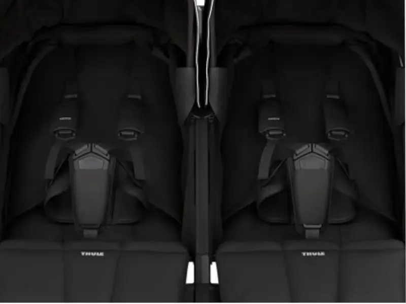 Each seat provides a cozy and secure space for your children, and the stroller's sleek and lightweight design, combined with large wheels and a suspension system, guarantees a smooth and comfortable ride on any surface